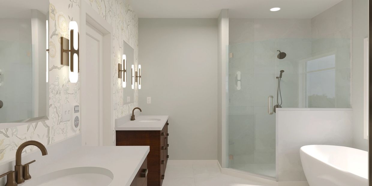 This bathroom remodeling project was designed to elevate both comfort and clarity of layout without altering the overall footprint. As part of a carefully planned bathroom renovation, the existing vanity cabinetry was retained, while new countertops, frameless mirrors, and wall sconces were introduced to refresh and modernize the space.